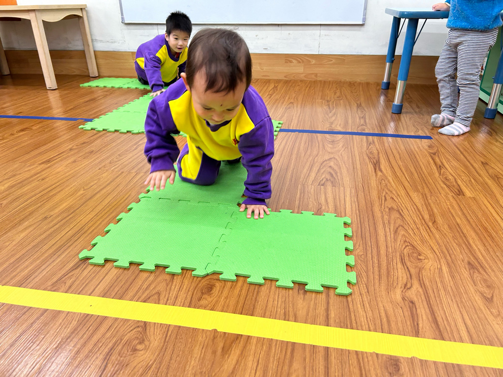 幼兒爬行可增進手眼協調與動作平衡。