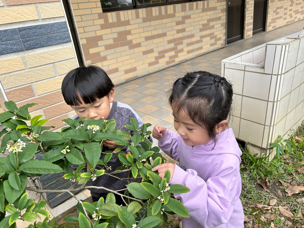 帶幼兒到校園尋找桂花的香味,準備玫瑰花、百合花、菊花讓幼兒聞一聞花香,說一說花的香味,校園的花是不是也有香味,可以聞一聞,準備玫瑰花瓣、茉莉花茶用熱水泡花茶,讓幼兒品嚐花茶的味道。