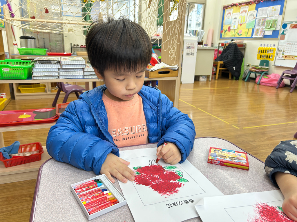 相簿名稱: 114學年度(下)中橙班-美勞DIY「蓋印玫瑰花」美感領域