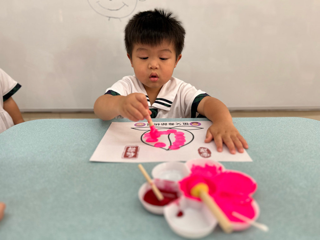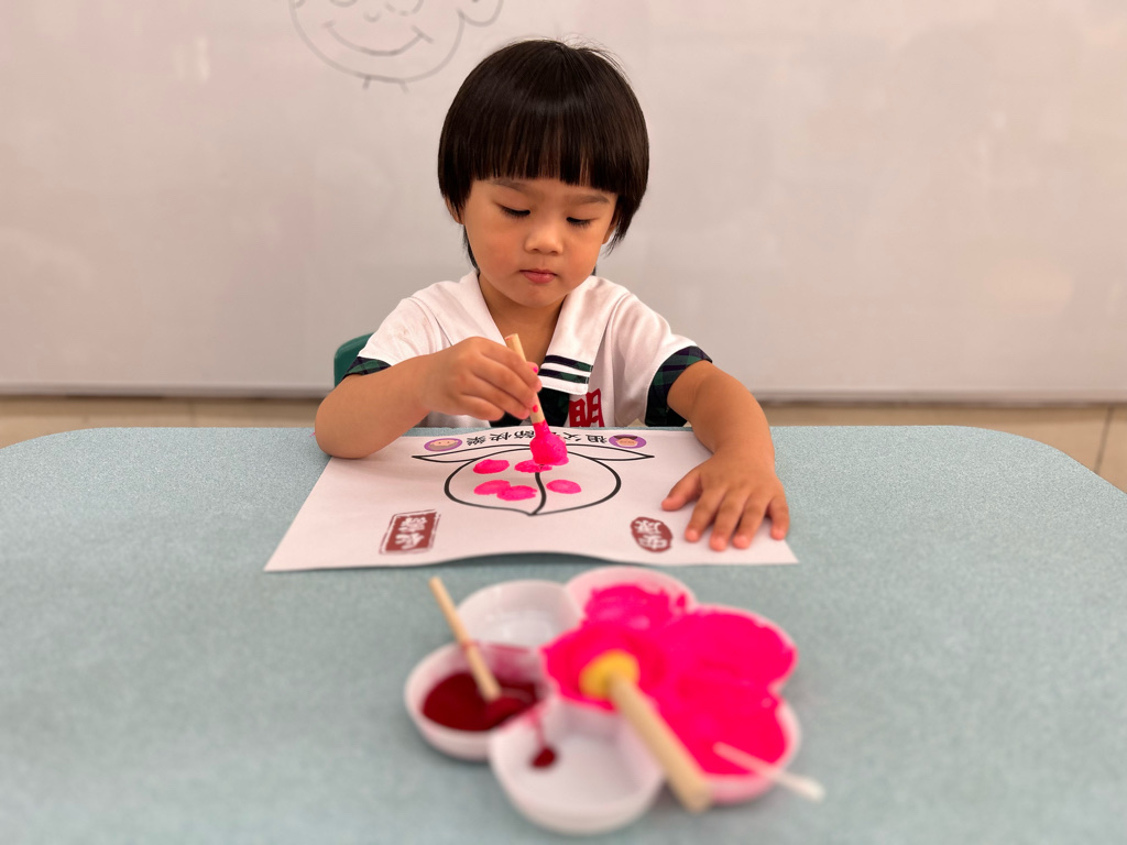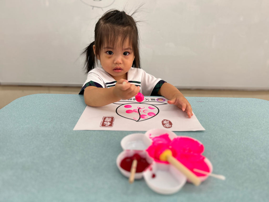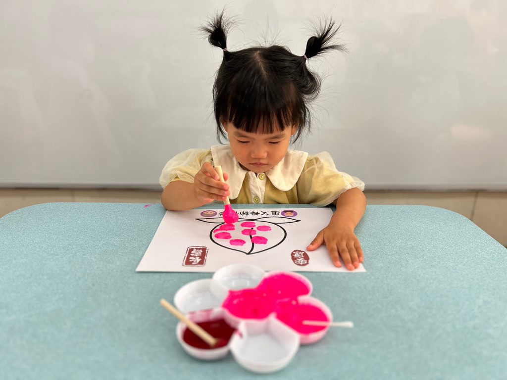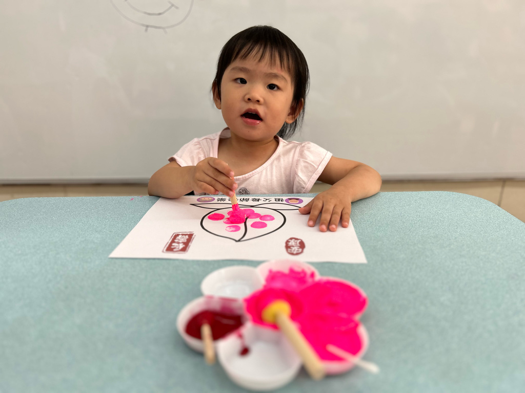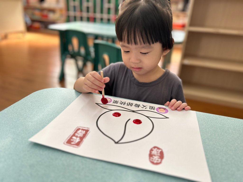 相簿名稱: 114學年度(上)太陽班{認知&美感領域-壽桃蓋印畫)