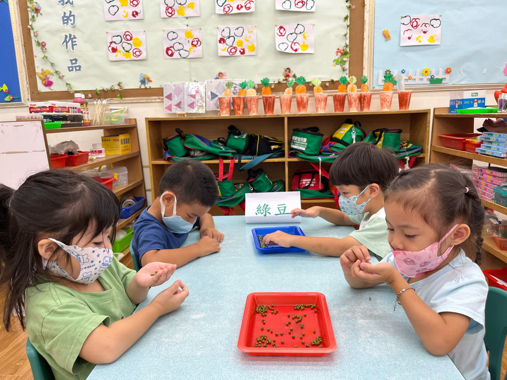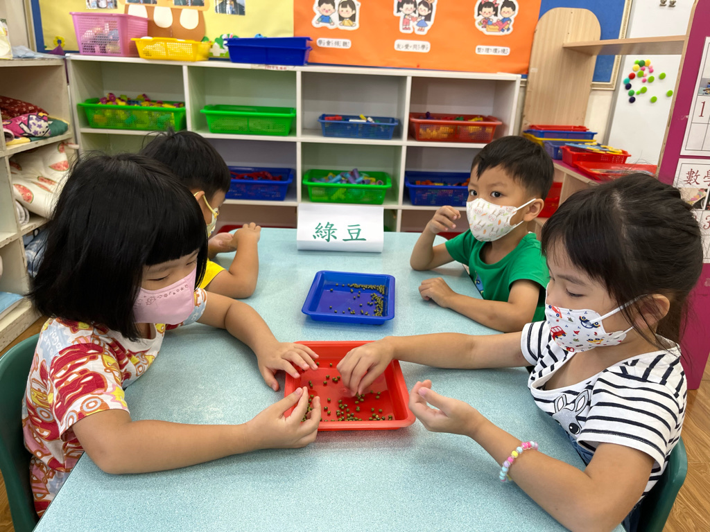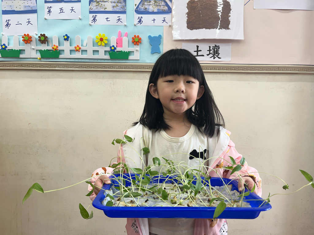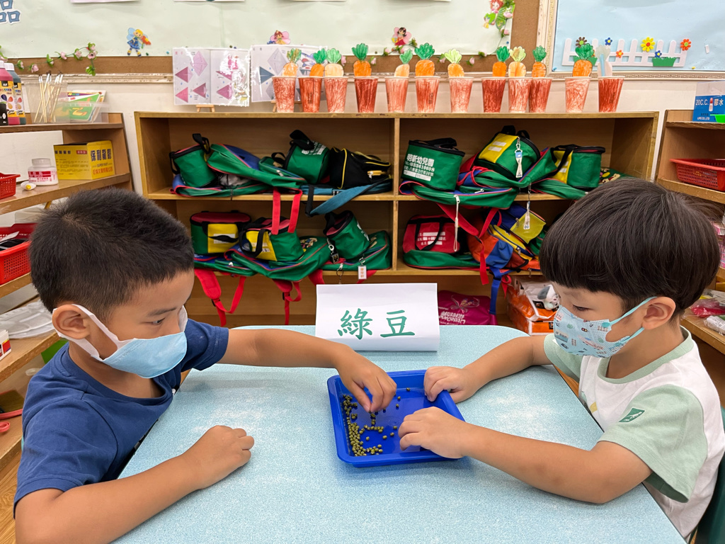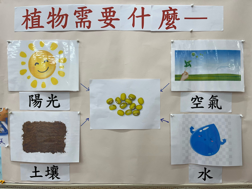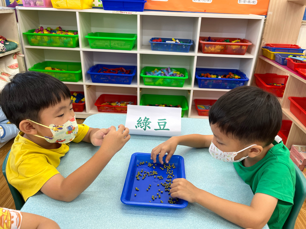 讓孩子透過實際種綠豆,觀察植物的生長過程,了解植物的生長條件(陽光、水、空氣、土壤),並能與同伴一起分工合作照顧綠豆寶寶噢😊