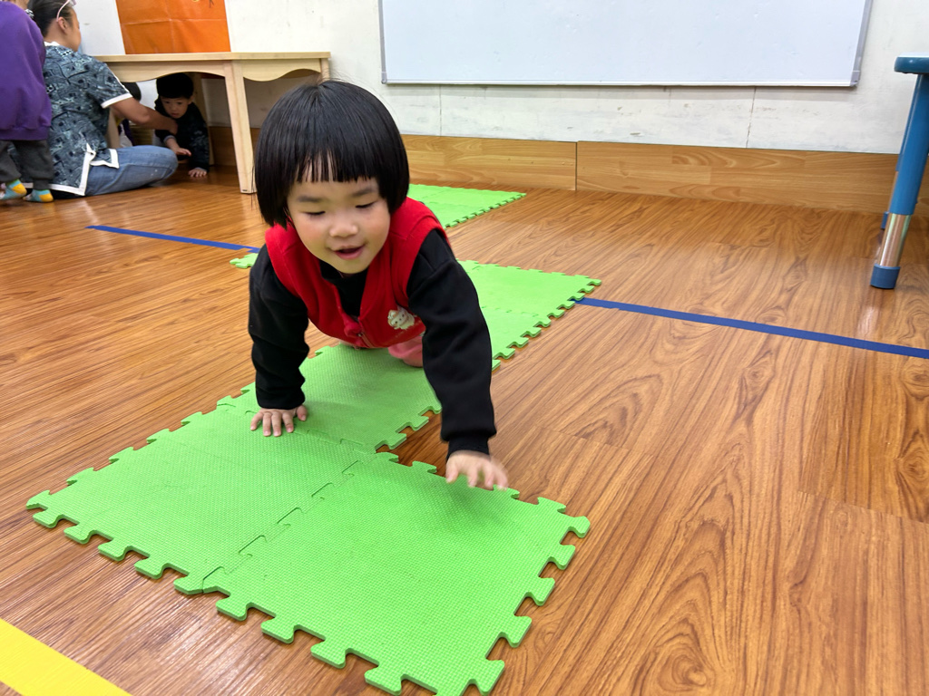 幼兒爬行可增進手眼協調與動作平衡。