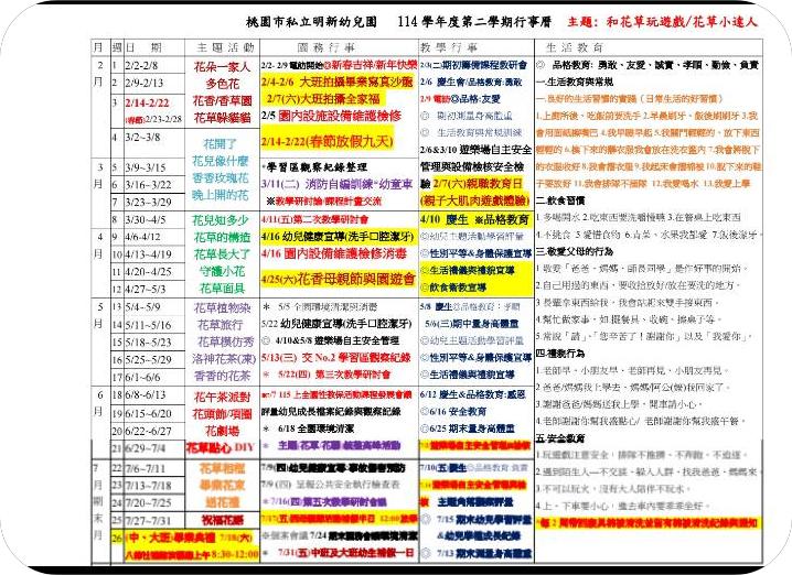 114學年度下學期行事曆~ 陪您共伴寶貝成長 (4/25花香母親節園遊會 7/18中、大班畢業典禮)